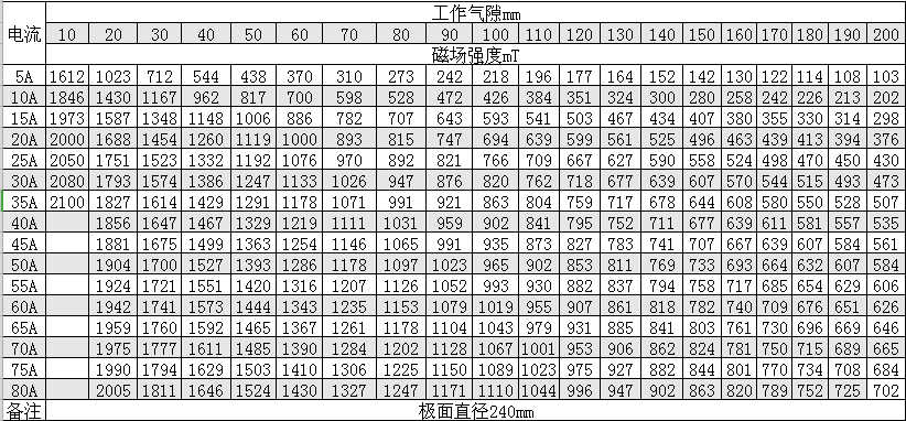 磁感應(yīng)強(qiáng)度:11000 Oe(氣隙100mm時)